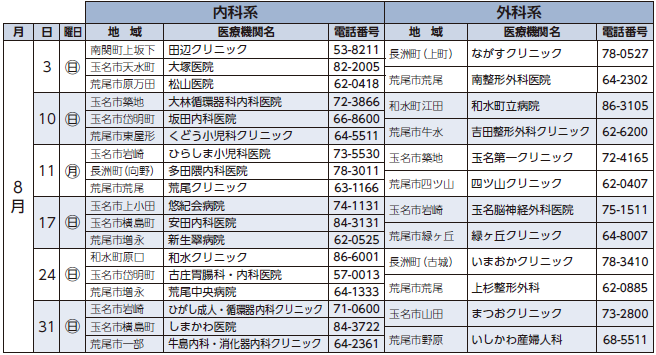 ※医院の都合で変更することがあります。最新の情報は、玉名郡市医師会・荒尾市医師会のホームページでお確かめください。
