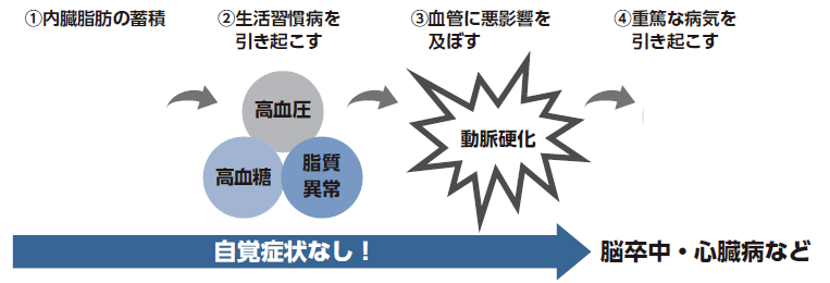 生活習慣病により脳卒中・心臓病などを引き起こす危険性が高まります。