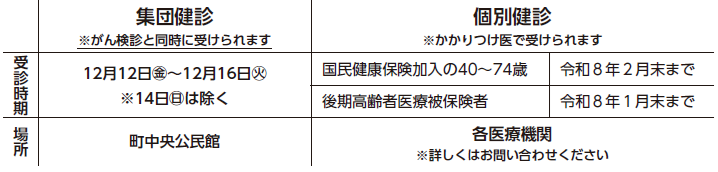 ※その他の人も基本健診を受けられます。対象者・受診方法などは「町の健診のご案内」や次のページをご確認ください。