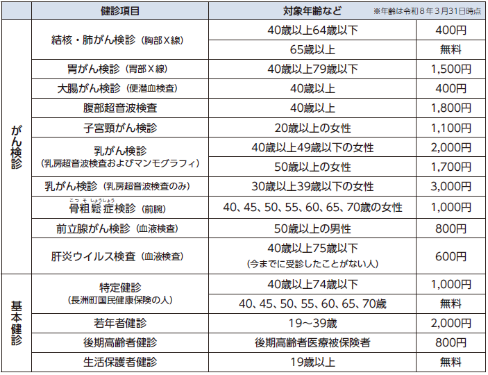 ◆長洲町の集団健診では、基本健診とがん検診が一緒に受けられます。