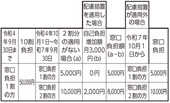令和4年10月1日から2割負担となる方について、外来医療の窓口負担割合の引き上げに伴う負担増減額を月3,000円までに抑える(入院の医療費は対象外)配慮期間が「令和7年9月30日」で終了となります。