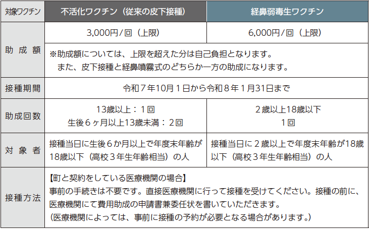 生後6ヶ月以上、年度末年齢18歳以下(高校3年生相当)のお子様に対して費用助成を行います。医療機関の窓口で接種費用と助成額(上限3,000円又は6,000円)の差額をお支払いください。