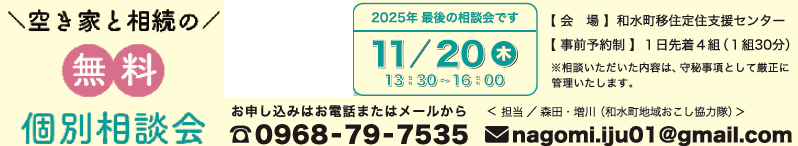 くらし 空き家と相続の無料個別相談会 37/38 前の記事 次の記事 発行日 : 2025年10月01日 自治体名 : 熊本県和水町 広報紙名 : 広報なごみ 2025年10月号 Tweet シェアする 協力隊が行く! その他のお知らせ(広報なごみ令和7年10月号)