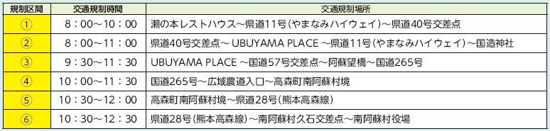 大会当日、高森町では、午前10時~11時30分までの間に交通規制を予定しております。ご迷惑をおかけし、大変申し訳ありませんが、何卒ご理解、ご協力くださいますようお願いいたします。
