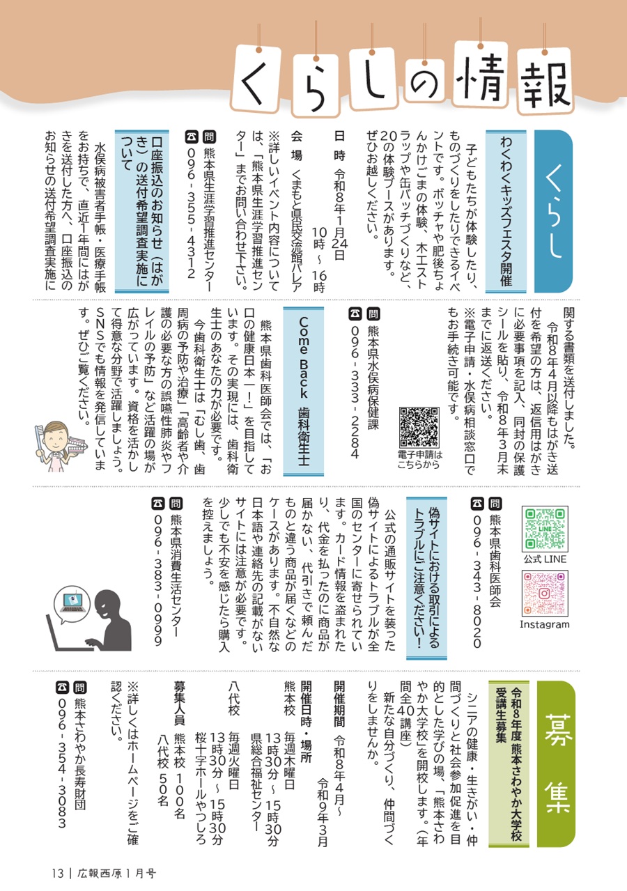 くらし 広報西原 令和8年1月号 P.13 12/27 前の記事 次の記事 発行日 : 2026年01月07日 自治体名 : 熊本県西原村 広報紙名 : 広報西原 令和8年1月号 Tweet シェアする 広報西原 令和8年1月号 P.12 広報西原 令和8年1月号 P.14