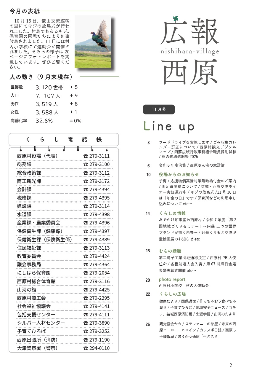 くらし 広報にしはら 令和7年11月号 P.2 2/28 前の記事 次の記事 発行日 : 2025年11月05日 自治体名 : 熊本県西原村 広報紙名 : 広報にしはら 令和7年11月号 Tweet シェアする 広報にしはら 令和7年11月号 表紙 広報にしはら 令和7年11月号 P.3