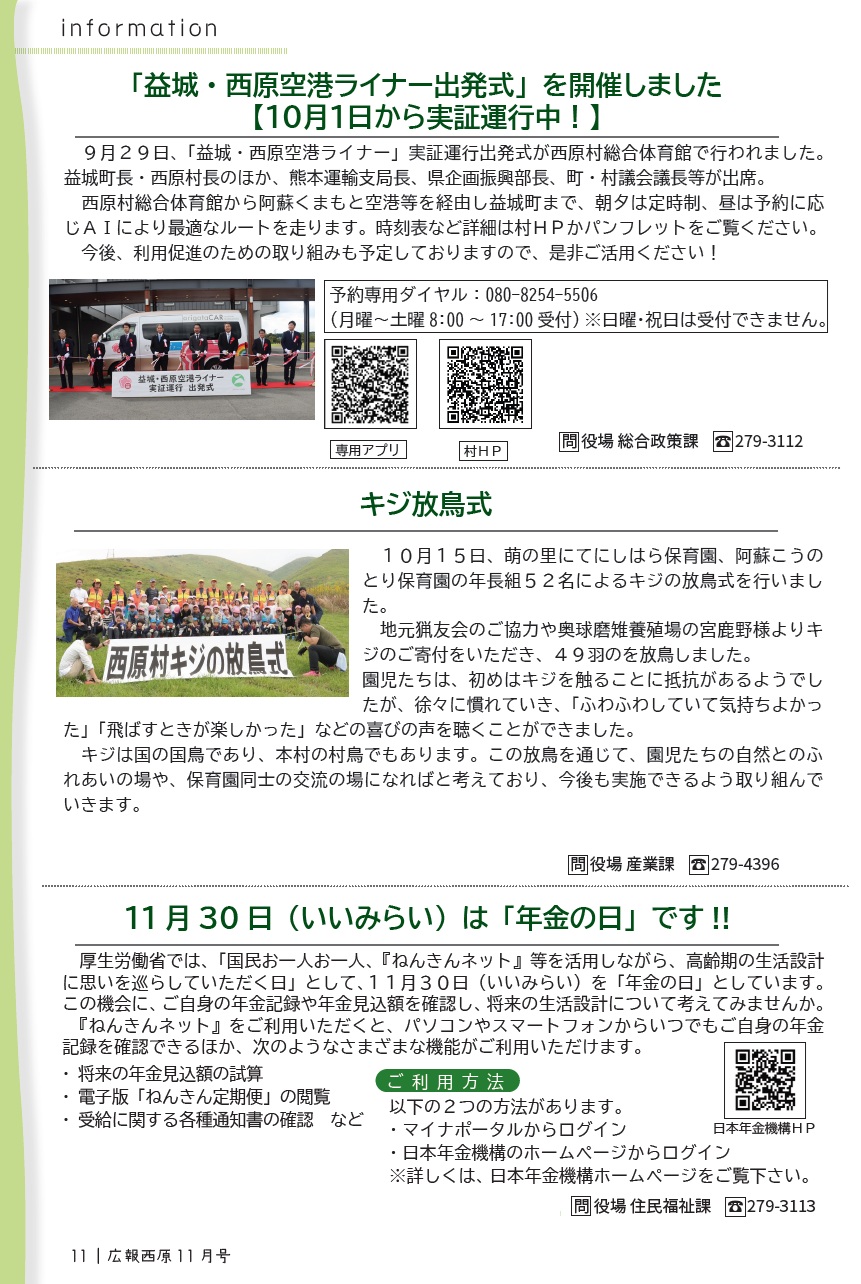 くらし 広報にしはら 令和7年11月号 P.11 10/28 前の記事 次の記事 発行日 : 2025年11月05日 自治体名 : 熊本県西原村 広報紙名 : 広報にしはら 令和7年11月号 Tweet シェアする 広報にしはら 令和7年11月号 P.10 広報にしはら 令和7年11月号 P.12