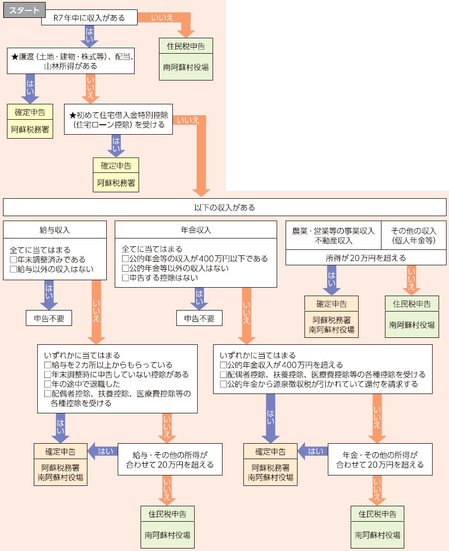 チャートを参考にご自身の申告内容をご確認ください。(令和8年1月1日現在で村に居住している人が対象です。)