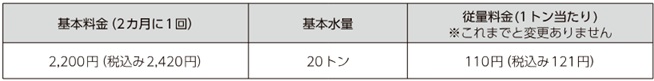 令和8年(2026年)4月利用分(6月請求)からの新料金は以下のとおりです。