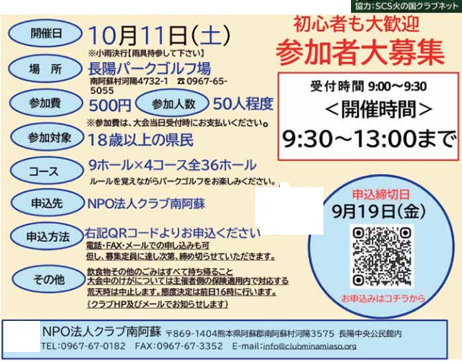 イベント 令和7年度県民スポーツの日「ふれあいスポーツ」事業 南阿蘇ふれあいパークゴルフ体験会 19/29 前の記事 次の記事 発行日 : 2025年08月30日 自治体名 : 熊本県南阿蘇村 広報紙名 : 広報みなみあそ 令和7年9月号 Tweet シェアする 子育て支援センター わくわくひろば 「地域づくり支援事業補助金」事業募集