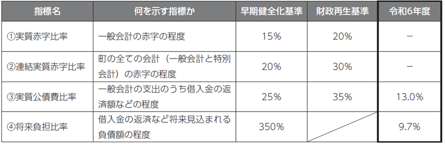 地方公共団体は、法律により毎年度財政指標を算定し、議会への報告と公表が義務付けられています。町の財政はどのような状況なのか、令和6年度の決算について指標をもとにお知らせします。