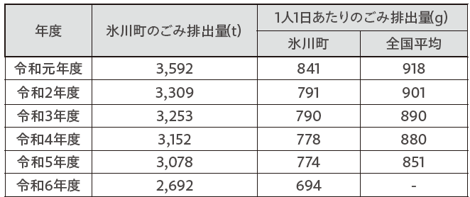 氷川町で排出されているごみの量は、町民ひとりひとりの環境への意識の高まりによって年々減少しています。