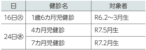 子育て 乳幼児健診情報 33/39 前の記事 次の記事 発行日 : 2025年08月30日 自治体名 : 熊本県氷川町 広報紙名 : 広報ひかわ 2025年9月号 受付:12時30分~ 会場:健康センター 氷川町 子どもカレンダー で検索 受付:9時30分~ 会場:健康センター 問合せ:町民課 保健予防係 【電話】0965-52-7154 Tweet シェアする 申請受付中 休日当番医・薬局(市外局番0965)