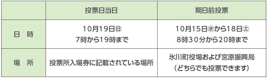 期日前投票期間は、投票用紙に候補者の氏名を書いてください。