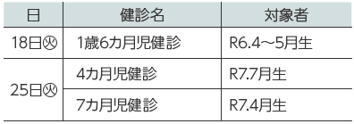 子育て 乳幼児健診情報 32/37 前の記事 次の記事 発行日 : 2025年10月30日 自治体名 : 熊本県氷川町 広報紙名 : 広報ひかわ 2025年11月号 受付:12時30分~ 会場:健康センター 氷川町 子どもカレンダー で検索 問合せ:町民課 保健予防係 【電話】0965-52-7154 Tweet シェアする 氷川町花火大会 休日当番医・薬局(市外局番0965)