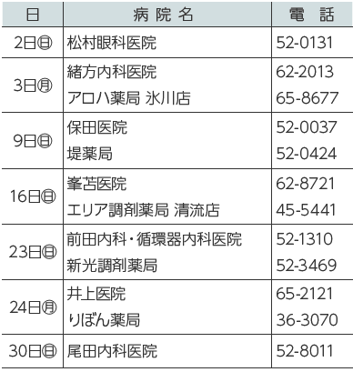 くらし 休日当番医・薬局(市外局番0965) 33/37 前の記事 次の記事 発行日 : 2025年10月30日 自治体名 : 熊本県氷川町 広報紙名 : 広報ひかわ 2025年11月号 最新情報は「医療情報ネット(ナビィ)」 本紙を参照ください Tweet シェアする 乳幼児健診情報 令和7年(2025年)11月カレンダー