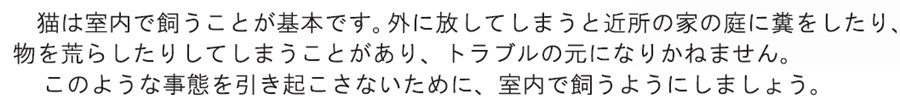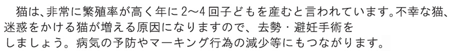 くらし 〔村の伝言板〕猫を飼う時はルールを守って飼いましょう! 14/36 前の記事 次の記事 発行日 : 2025年09月24日 自治体名 : 熊本県水上村 広報紙名 : 広報みずかみ 令和7年10月号 ■猫は室内で飼いましょう ■不妊・去勢手術をしましょう ■野良猫へのエサやりについて 問合せ: Tweet シェアする 〔村の伝言板〕弁護士無料法律相談/行政相談所 〔村の伝言板〕10月の税金等