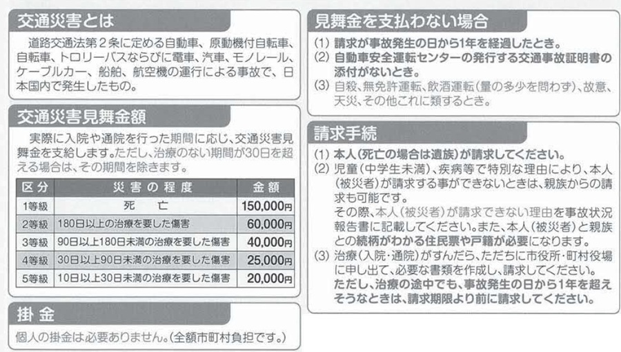 くらし 〔村の伝言板〕交通災害共済制度 26/36 前の記事 次の記事 発行日 : 2025年09月24日 自治体名 : 熊本県水上村 広報紙名 : 広報みずかみ 令和7年10月号 ■交通災害共済制度とは あなたも見舞金を受けられます! ■必要な書類など ■Attention 問合せ: Tweet シェアする 〔村の伝言板〕「パソコン講座・ボランティア参加のご案内」 お知らせ information(1)
