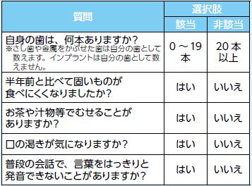 5項目のうち、「該当」が2つ以上ある場合はオーラルフレイルです。