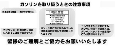 ガソリンを携行缶で購入される利用者の方及びガソリンスタンドの従業員の方は、今一度下記の資料をご確認ください。