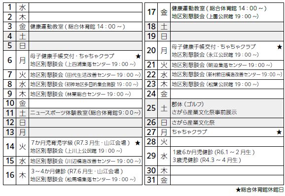 くらし 10月の行事予定 14/22 前の記事 次の記事 発行日 : 2025年09月18日 自治体名 : 熊本県相良村 広報紙名 : 広報さがら Vol.543 2025年10月号 変更になる場合もあります。 10月は村県民税5期、固定資産税5期、国民健康保険税6期、後期高齢者保険料4期、介護保険料7期の納付月です。納め忘れのないよう便利な口座振替のご利用を! Tweet シェアする 実はとっても危険!ガソリン携行缶の取扱いに注意! 休日在宅医10月