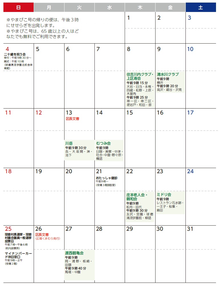 くらし 1月 行事予定・やまびこ号運行表 32/34 前の記事 次の記事 発行日 : 2025年12月25日 自治体名 : 熊本県球磨村 広報紙名 : 広報くまむら 2026年1月号 Tweet シェアする 編集後記 球磨村で観光振興に関心のある仲間を募集!
