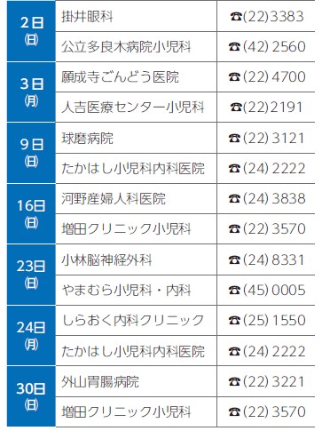 ※都合により変更になる場合がありますので、受診する人は事前に医療機関にご確認ください。