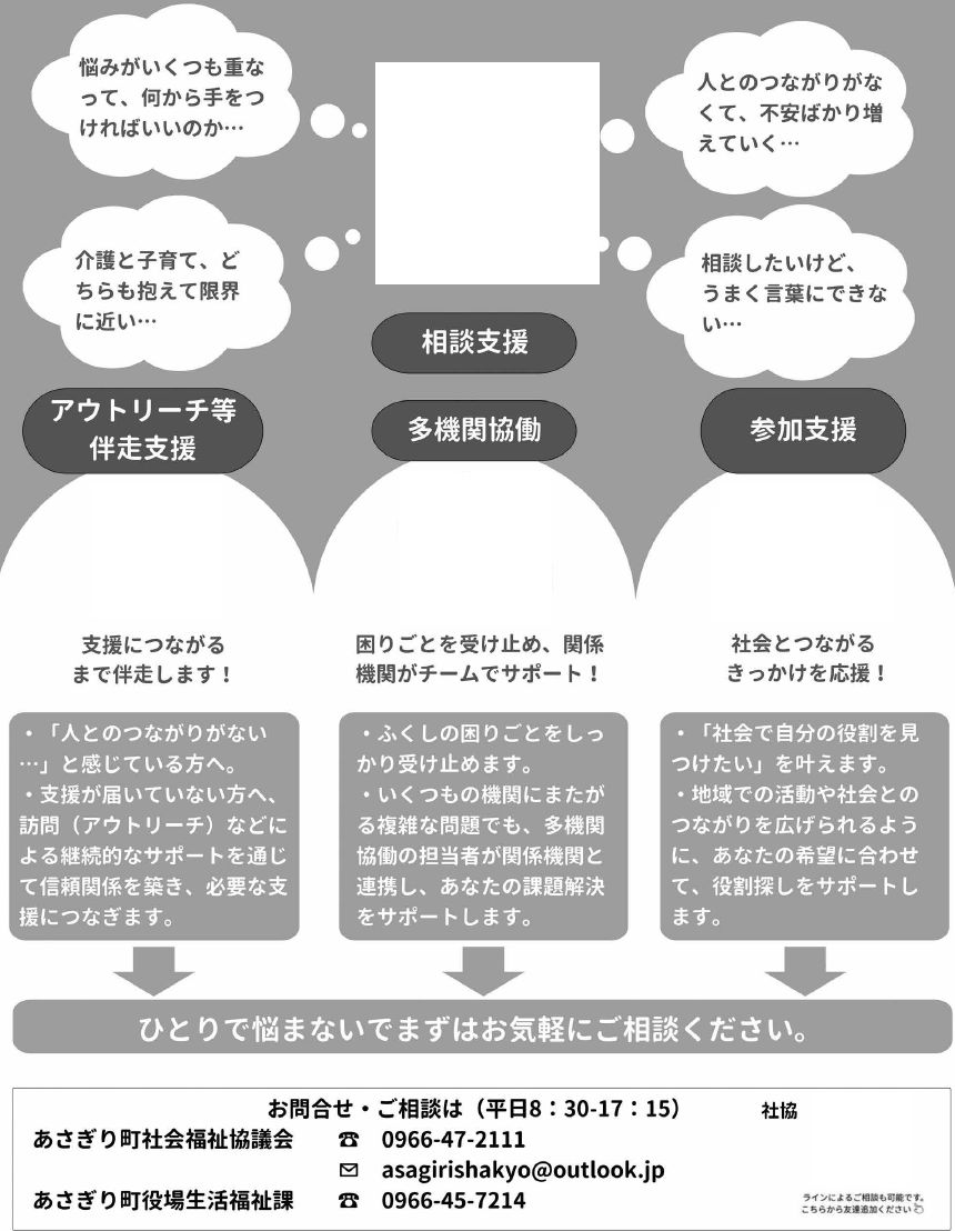 くらし ふくしの相談支援体制が新しくなりました!複雑な困りごと一人で抱え込んでいませんか? 14/38 前の記事 次の記事 発行日 : 2025年12月18日 自治体名 : 熊本県あさぎり町 広報紙名 : 広報あさぎり 2025.12月号 Tweet シェアする あさぎり健幸プログラム参加者募集! 豚熱ウイルスの拡散防止にご協力をお願いします!STOP!豚熱