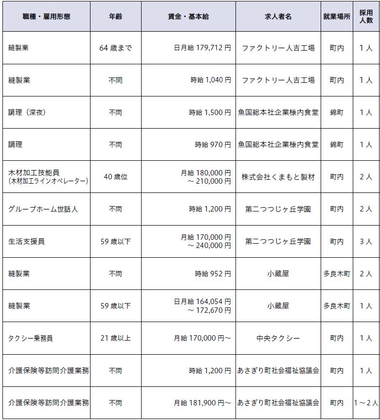 問い合わせ:あさぎり町定住促進無料職業紹介所(商工観光課内)