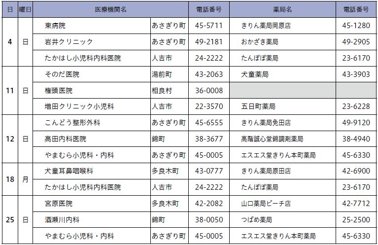 くらし 休日在宅当番医・当番薬局1月 30/38 前の記事 次の記事 発行日 : 2025年12月18日 自治体名 : 熊本県あさぎり町 広報紙名 : 広報あさぎり 2025.12月号 町のホームページで検索もできます *診療時間は午前9時から午後5時までとなります。なお、諸事情により変更の場合がありますので受診時は医療機関にご確認ください。 Tweet シェアする シルバー会員募集のお知らせ 親子同士でふれあいませんか?子育てサロン