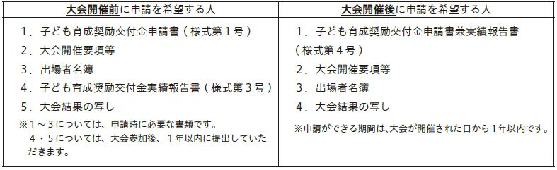 九州大会以上の大会に出場する人で、町内に住所を有する高校生までの子ども