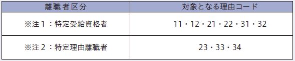 ※注1、2 「雇用保険受給資格者証」または「雇用保険受給資格通知」の第1面「離職理由」欄に、次のコードが記載されている人が特定受給資格者・特定理由離職者となります。
