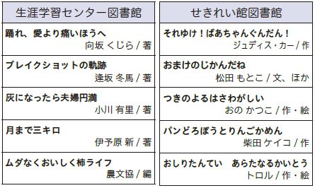 また、せきれい館図書館では、子どもたちに本に親しんでもらえるように、本や図書館がテーマの絵本や児童書を特集します。