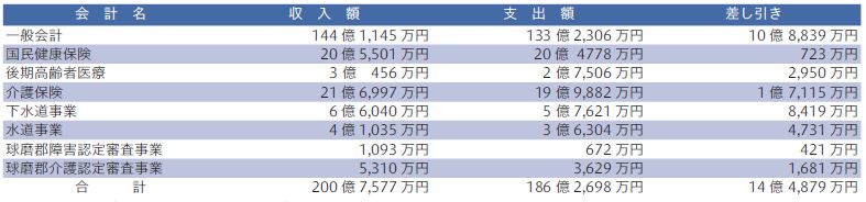 町では、一般会計、球磨郡障害認定審査事業特別会計及び球磨郡介護認定審査事業特別会計が対象ですが、どの収支も黒字のため実質赤字はありませんでした。