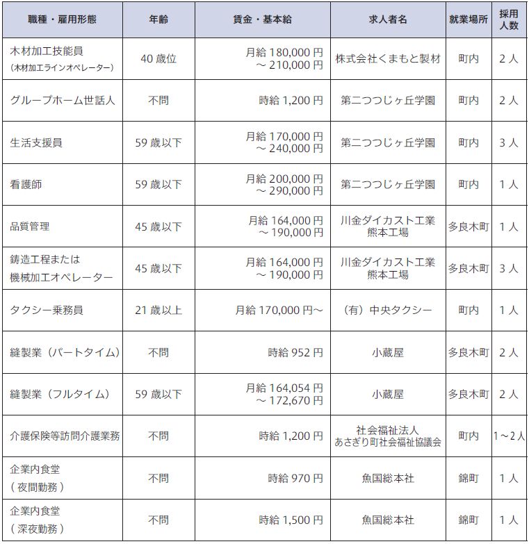 問い合わせ:あさぎり町定住促進無料職業紹介所(商工観光課内)