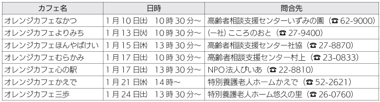 ■令和8年1月のオレンジカフェ(認知症カフェ)