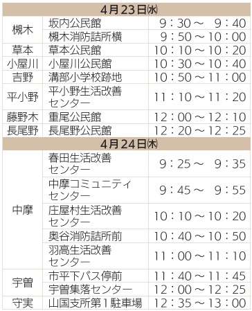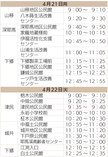 ※会場ごとの時間や訪問の順序が昨年と変更になっている箇所があるので、お越しになる会場での注射実施日時を必ずご確認ください。