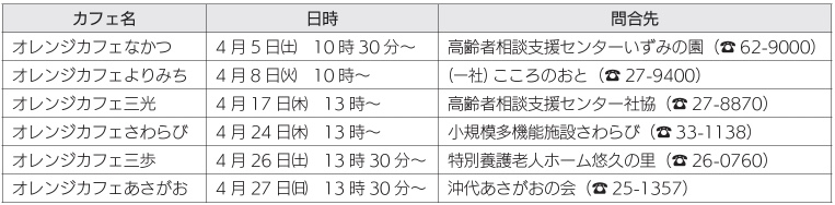 また、参加する場合は事前に各問合先または介護長寿課にお問い合わせください。