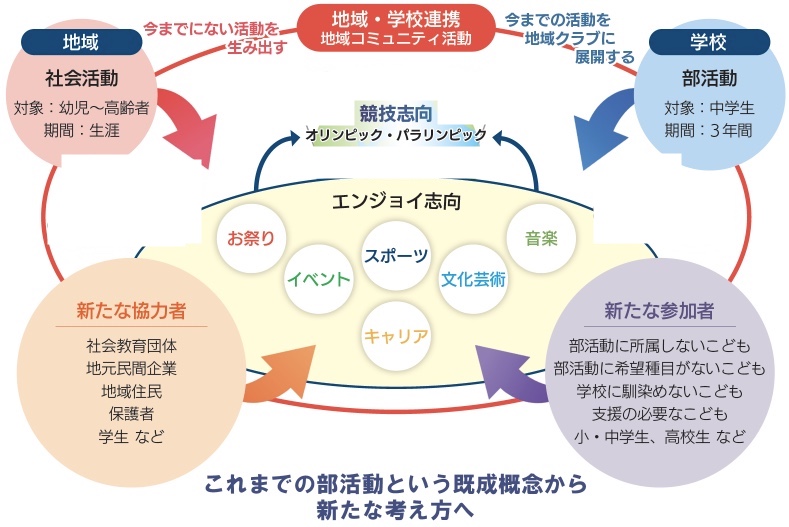 ・中学校部活動は学校ごとの活動から、地域コミュニティの活動に変わります。