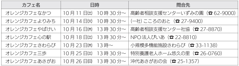 また、参加する場合は事前に各問合先または介護長寿課にお問い合わせください。