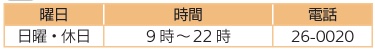 ※19時~翌8時、日曜・祝日は8時~翌8時も可