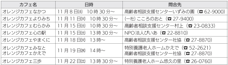 また、参加する場合は事前に各問合先または介護長寿課にお問い合わせください。