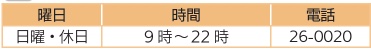※受付時間は、21時30分まで