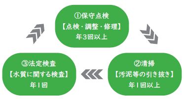 浄化槽は、微生物などの働きを利用して汚れた水をきれいにする装置で、維持管理がとても重要です。そのため、浄化槽の使用には、浄化槽法による3つの義務が定められています。