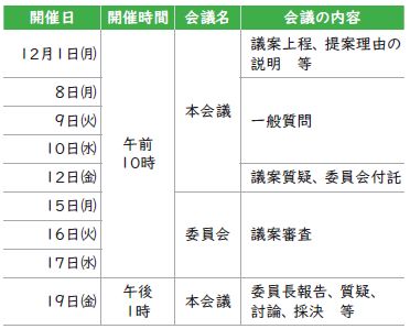 令和7年第4回日田市議会定例会は、下記の日程で開催します。なお、本会議・委員会は誰でも傍聴できます。