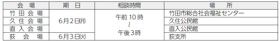 6月1日は、人権擁護委員法の施行日で「人権擁護委員の日」と定められています。全国一斉に特設相談所の開設を実施しており、本市でも下記日程で相談所を開設します。心配ごとや困っていることがあれば、気軽にご相談ください。人権擁護委員が相談を受けます。