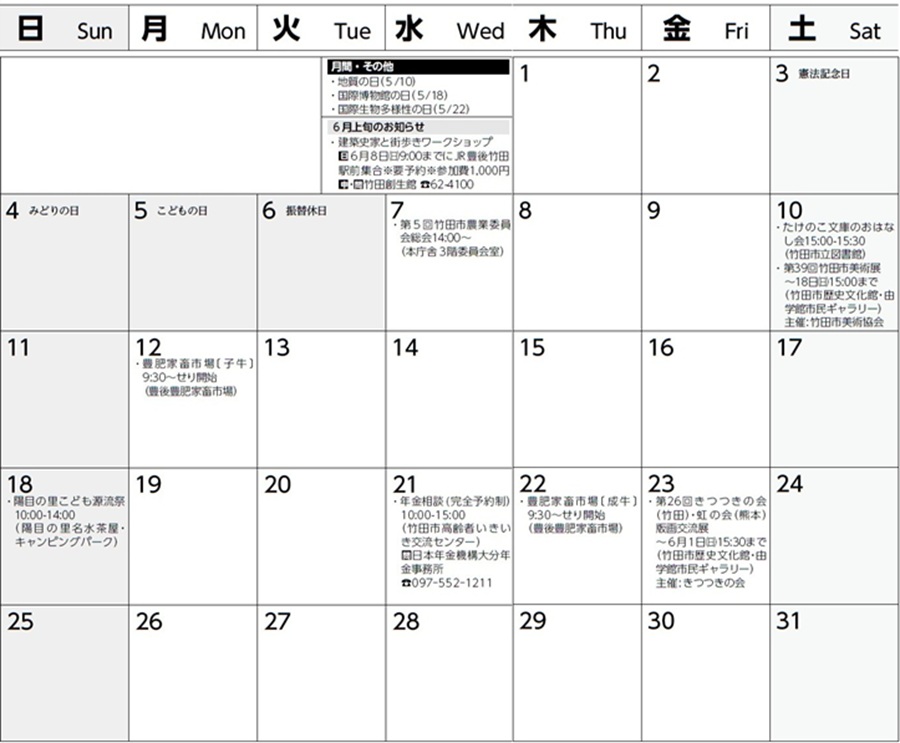 ※空いているスペースは、皆さんの予定を書くなどご活用ください。