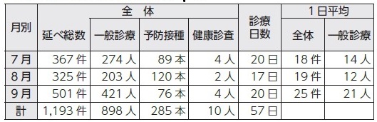 令和7年7月から9月までの診療実績