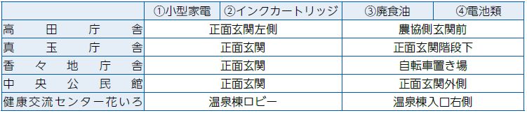 資源の有効活用を目的として、下記の品目を対象とした資源回収ボックスを設置し、拠点回収を実施しています。資源の有効活用のため、皆さまのご協力をお願いします。