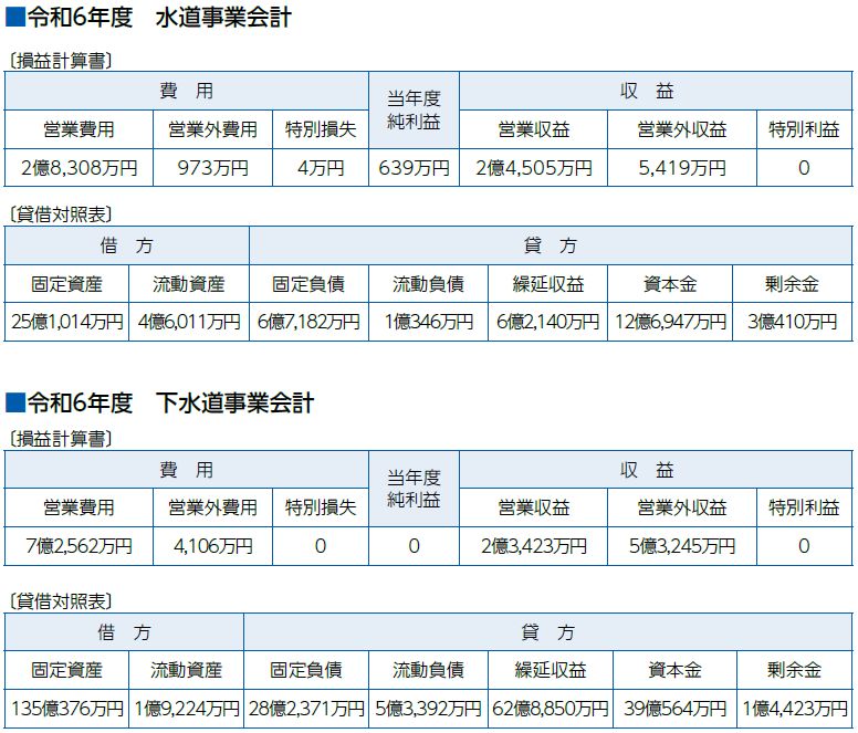 水道事業・下水道事業ともに地方公営企業法が適用され、民間企業同様の発生主義に基づく複式簿記で会計処理を行っています。